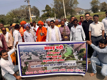 आंदोलन की शुरुआत साधु-संतों के सान्निध्य में आयड़ नदी की महाआरती से हुई। महंत कैलाश नाथ ने शंख बजाकर विधिवत शुभारंभ किया। ग्रामीणों ने आयड़ को “आस्था की गंगा”मानकर पूजा-अर्चना की और नदी को स्वच्छ बनाने का सामूहिक संकल्प लिया। प्रदर्शन में पंच-पटेल, युवा, महिलाएं और बड़ी संख्या में ग्रामीण शामिल हुए।