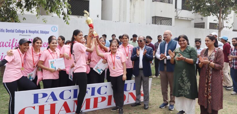 उदयपुर, 23 फरवरी: पैसिफिक डेंटल कॉलेज एंड हॉस्पिटल, देबारी के स्पोर्ट्स ग्राउंड पर आयोजित तृतीय पैसिफिक महिला क्रिकेट कप 2026 में शानदार मुकाबलों के बाद मेजबान पीडीसीएच ने ट्रॉफी अपने नाम कर ली। प्रतियोगिता में विभिन्न डेंटल कॉलेजों की टीमों ने उत्साह और खेल भावना का परिचय दिया।