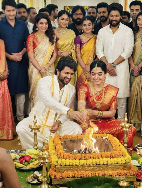 दोनों कलाकार हिंदी सिनेमा में भी सक्रिय रहे हैं। रश्मिका ने एनिमल में रणबीर कपूर के साथ मुख्य भूमिका निभाई, जबकि विजय देवरकोंडा लाइगर में नजर आए थे।