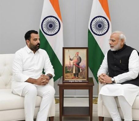 उदयपुर राजघराने के डॉ. लक्ष्यराज सिंह मेवाड़ प्रधानमंत्री नरेन्द्र मोदी के साथ।